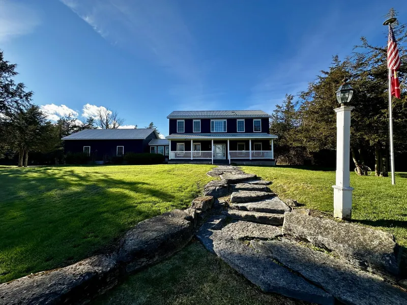 Spacious Colonial in a Private Adirondack Setting. Nestled on a private lot in the heart of Essex, NY, this spacious Colonial offers serene living with stunning sunrises and sunsets. Tucked away from the main road, a long, sweeping driveway leads to this attractive home featuring a charming front porch with low-maintenance composite decking-perfect for relaxing and enjoying the peaceful surroundings. A grand foyer welcomes you into the home. The kitchen features an island, breakfast bar, and eat-in area, with a formal dining room nearby. Large windows throughout capture the sunlight and surrounding views. The cozy living room includes a propane fireplace, and an adjacent room offers flexibility as a family room, home office, or den. A half bathroom in the hallway completes the first floor. A bright sunroom connects the home to an oversized two-car garage with in-floor heat, an unfinished...