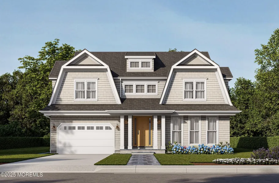 Nantucket Living In Fair Haven! This incredible new construction New Shore Colonial is scheduled to be finished by Spring 2026. Built by Vesta Landmark Builders LLC, this double gambrel home offers 5 bedroom 4 full and 1 half baths spread across over 5,000 square feet of total living space. 91 Forrest Ave is inspired by the homes of Osterville on Cape Cod and Nantucket, bringing a full cedar shake home with modern amenities throughout to one of Fair Haven's best kept neighborhoods. Upon entering the home, the attention to detail is seen everywhere. To the right, a study can be found, or used as a flex space that is flooded with western light due to its oversized windows. When exiting the 2 car garage, you are met with a generously sized mudroom with cubbies and plenty of storage. Through the foyer, the home's half bath and oversized eat-in kitchen flows into a formal dining space and living room accented by vaulted ceilings and a gas burning fireplace. Immediately off this space, you access your covered porch which then leads you to an incredible blue stone patio and a fully equipped outdoor kitchen. Taking the open staircase to the second floor, the laundry room is located at the end of the landing, centrally located among 4 bedrooms, all with ensuites. The 2 street facing bedrooms share a full bath with double vanity. The 3rd bedroom is located just off the laundry room. Lastly, the primary suite with an oversized bedroom accented with vaulted ceilings, double walk-in closets and an ensuite with double vanity and separate tub and shower. The top floor is walk up and can be used as flex space, storage, etc. The fully finished basement offers the final bedroom and full bath as well as additional living space perfect for a home gym, play room, extra entertaining space, the possibilities are endless! With outdoor and indoor amenities anchoring this incredible home, fully wrapped in Maibec Cedar Shake, top-of-the-line windows and appliances, this home has everything one can ask for. Close to everything Fair Haven has to offer as well as train/bus/ferry to NYC. Minutes to the beaches and restaurants as well as the surrounding towns including Rumson, Sea Bright, Little Silver, etc.