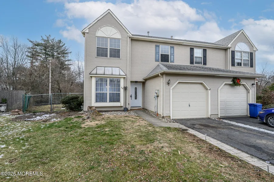 Beautiful 3 Bed 2.5 Bath Colonial in desirable Freehold is ready and waiting for you! Foyer entry welcomes you in to find luxe vinyl plank flooring, a neutral palette making it easy to customize, and modern touches throughout. Large Eat-in Kitchen holds SS appliances, quartz counters with coordinating backsplash, a delightful breakfast bar, floating shelving, and a plethora of premium cabinetry for storing all of your kitchen needs. The formal Dining Rm off of the kitchen makes hosting dinner parties a breeze. Unwind in the spacious Living Rm featuring a soaring vaulted ceiling that really opens up the space, pass through opening to the Dining Rm for easy conversation, & sliding glass doors leading the the rear yard. A lovely 1/2 Bath completes the main level. Make your way upstairs to find the main full bath with tub shower + 3 generous Bedrooms inc. the Primary Suite. Primary Bedroom boasts its own private stunning ensuite bath with dual sink vanity and tiled stall shower. Laundry on this level is so convenient. Relax outdoors in the large fully fenced yard, complete with patio. 1 Car Garage and Driveway provides ample parking. Close to Shopping, Dining. schools, & parks + public transportation and major rds for an easy commute. Don't wait, this one won't last! Come & see TODAY!!