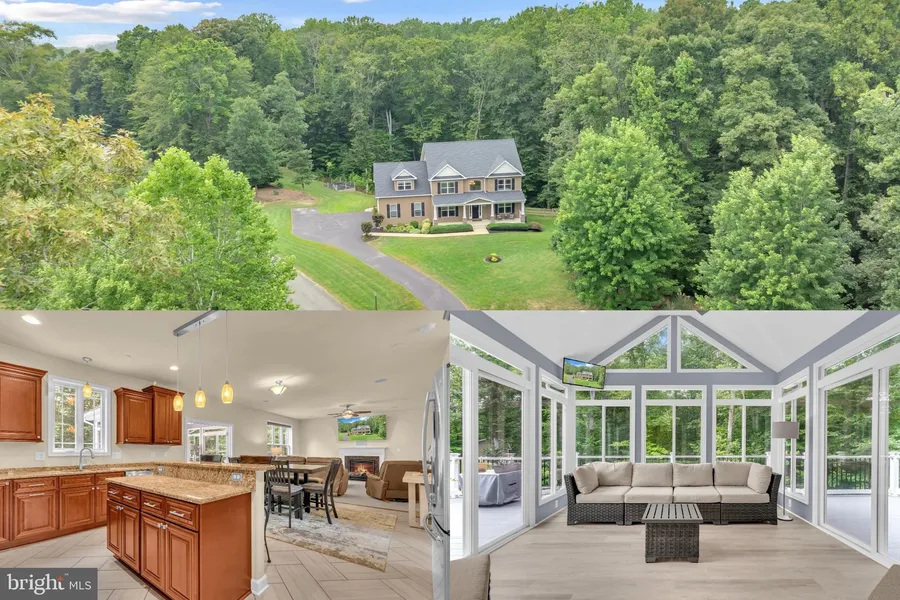 A pristine colonial tucked away on 3 acres at the end of a tranquil cul-de-sac in the sought-after Hollybrook Farm neighborhood. You'll fall in love the moment you pull up to the relaxing front porch and enjoy nature from the moment you arrive. Inside, a two-story foyer with gleaming hardwood floors opens to formal living and dining rooms with 9-foot ceilings, creating a perfect backdrop for entertaining and everyday living. The chef's kitchen shines with upgraded countertops, stainless steel appliances, abundant cabinetry, and a sunny breakfast area. The adjacent family room features surround-sound and a gas fireplace, with natural light pouring in through windows throughout the home. In 2021, the owners added a composite deck and a stunning 14*14 sunroom-ideal for morning coffee or evening gatherings and seamlessly blending indoor and outdoor living. Upstairs, four spacious bedrooms include an owner's suite with a tray ceiling and rope lighting, plus a deluxe bathroom with a large walk-in shower, soaking tub and dual sinks. On the opposite side of the upstairs the bonus room over the garage could possibly be another owner's suite with entry to the hall bathroom. The finished basement offers flexible space or an additional bedroom, a full bath, huge recreational area and a dedicated dog grooming wash station-perfect for pet lovers and entertainers alike. Additional highlights include gas on-demand hot water, an irrigation system around the property, and a 16*24 two-level shed with electricity, 200-amp service and a lean-to for tractor coverage. There is abundant storage throughout this property and numerous special touches that you'll appreciate on your tour. This residence is close to modern conveniences, schools, and commuting routes, making Hollybrook Farm a true standout-don't miss the opportunity to make it yours.