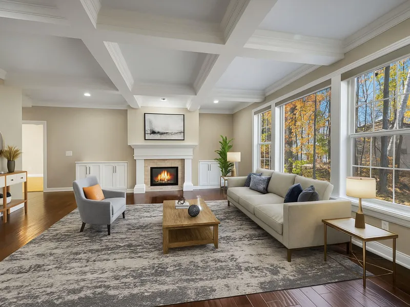Gorgeous, quality-built home in the Luxemburg-Casco School District, just 20 minutes from Green Bay. This home features an open floor plan with a kitchen that offers plenty of storage space and a large island. The living room includes a coffered ceiling and a fireplace. The first-floor suite features a walk-in closet, double-sink vanity, walk-in shower, and tub. Enjoy the mudroom with built-in lockers connected to the laundry room. Additionally, the second floor has three bedrooms and a full bathroom. 40x32 detached shop with ample storage. Professionally finished basement in 2018 with kitchenette, huge rec room, and extra bedroom and bathroom. This lot is surrounded by trees, offering privacy and a peaceful setting. Heated attached garage. Newer appliances. Photos are virtually staged.