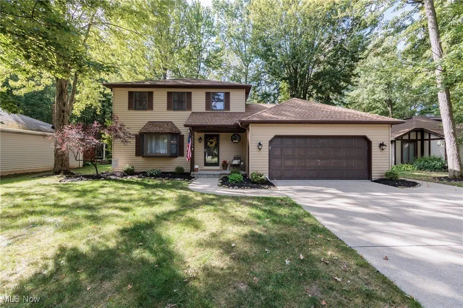 Welcome to this charming 3-bedroom, 2-bath colonial with great curb appeal, perfectly situated on a quiet street. The home rests on a larger lot with mature trees, offering both privacy and a natural setting. Out back, you'll enjoy a spacious wood deck overlooking the wooded yard, ideal for relaxing or entertaining. Inside, the home features a welcoming layout that begins with a large living room upon entry, a nice-sized dining room, and a well-equipped kitchen. A huge family room with a fireplace, vaulted ceiling, and large windows provides a stunning view of the private backyard and fills the space with natural light. The home offers two full baths - one conveniently located on the first floor and another upstairs with the bedrooms. Adjacent to the first-floor bath is a laundry room with washer and dryer included, adding everyday convenience. The basement features a finished side currently used as a gym that could easily be transformed into a recreation room, while the other side offers ample space for storage. Additional highlights include a 2-car attached garage with an extended driveway, offering plenty of parking space. This home offers not only comfort and space but also a great location close to schools, shopping, and much more. With its timeless colonial character and peaceful setting, it's ready to welcome its next owner! Make your appointment today!