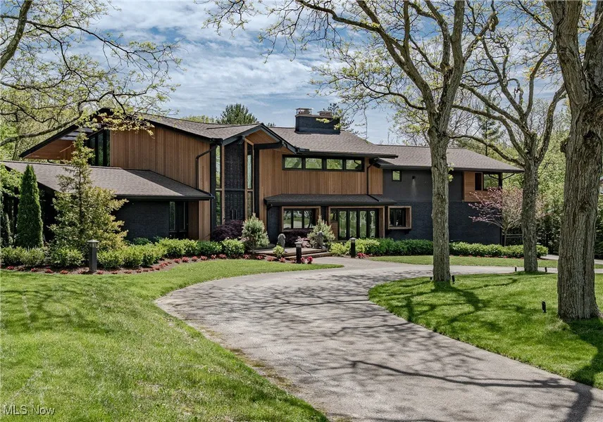 Curated Living Meets Iconic Mid-Century Form-Set behind a circular drive on over 1.3 acres of private, artfully landscaped grounds, this reimagined modern estate effortlessly fuses mid-century architecture with sophisticated modern enhancements. This residence is a sanctuary of refinement and seamless indoor-outdoor living. Meticulously renovated-main house, pool house, pool, outdoors, and grounds. Enter through dramatic hand-carved wooden double doors into an impressive foyer with the restored original staircase. Sunlight floods the open living areas, dining room, and chef's kitchen with dual islands, high-end appliances, rich cabinetry, and a cozy fireside breakfast nook. The main floor also offers a private guest suite with en-suite bath and a powder room. Upstairs, the primary suite is an oasis with floor-to-ceiling windows and a spa-inspired bath; two additional bedrooms share a Jack-and-Jill bath, while an office/bedroom offers panoramic views of the tranquil grounds. The lower level adds a rec room. Step outside through 10-ft. custom sliding glass doors to resort-style living. You are instantly transformed into a world of leisure with a two-tier TimberTech deck, complete with a smart pergola that includes heaters and a louvered roof for opening and closing. The jaw-dropping oversized gunite pool can be controlled by an app and is framed by the elegantly tiled pool deck with a turf inlay. Landscape lighting, sandstone boulders, and perfectly placed landscaping have been thoughtfully installed to enhance privacy and ambiance. The cherry on top of this entertainer's dream space, the Forno Piombo Italian pizza station and integrated Sonos and JBL surround sound throughout the exterior! The transformed pool house offers over 789 sq. ft., complete with a game room, full bath, and pool storage. A rare fusion of mid-century style and Miami-inspired outdoor living, this one-of-a-kind retreat is a unique opportunity for unforgettable entertaining and everyday luxury!