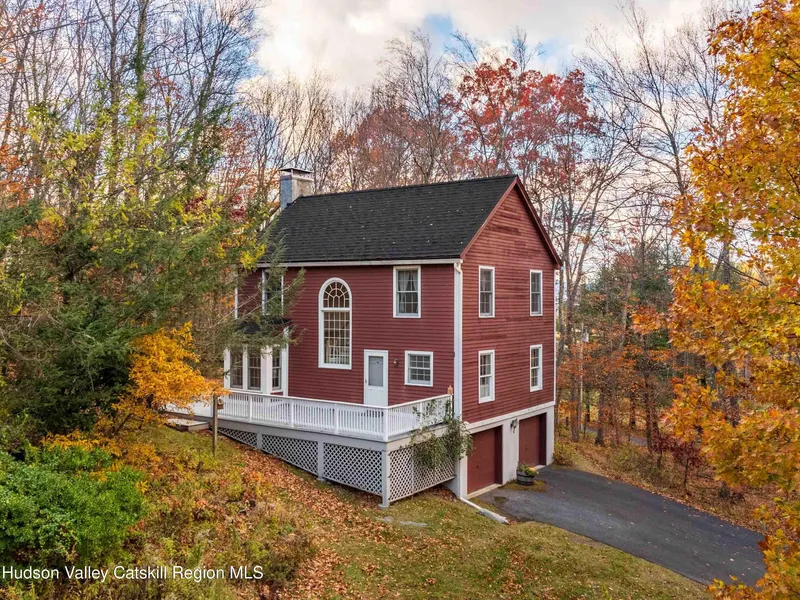Nestled along a quiet country road in coveted Upper Red Hook, The Beam & Hearth House is a timeless red colonial with a secret: a warm and rustic post and beam interior that beautifully blends classic architecture with modern country living. Follow the paved drive to this striking two-story home set on 3.43 wooded acres, offering privacy and serenity while maintaining proximity to local amenities. There is a large, level cleared area in the yard, ideal for a future garden, pool, or firepit, along with seasonal Catskill Mountain views. Inside, natural light pours through oversized windows, illuminating wood ceilings, exposed beams, and chestnut floors. The inviting living room centers around a fireplace with a wood-burning stove insert and includes a charming window seat, perfect for reading or daydreaming. A spacious country kitchen, formal dining room, and powder room complete the main level. Upstairs are three generous bedrooms, including a primary suite with an en suite bath, and a second full guest bath. Each room showcases the home's post and beam craftsmanship. The lower level offers a flexible space that is ideal for a home office, studio, or gym, along with an attached two-car garage for added convenience. Every window frames a peaceful wooded view, connecting you to nature year-round. Located just 90 minutes from NYC and minutes from Bard College and the Villages of Red Hook and Rhinebeck, this property offers an exceptional balance of seclusion and accessibility. Easy access to Routes 9, 9G, 199, the Taconic State Parkway, and the Kingston-Rhinecliff Bridge makes this an ideal full-time residence or country escape. The Beam & Hearth House is where rustic charm, modern comfort, and timeless design come together beautifully in the heart of the Hudson Valley.
