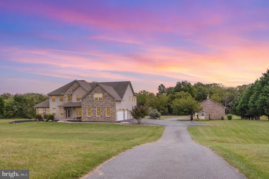 Beautiful custom built home with detached garage on almost 4 acres. Large detached garage 32'x70' has 4 bays with storage area with full attic, and bathroom rough in. The detached garage has solar panels on the back. The house has a 3 car garage, as you walk in from the garage you enter into an open concept layout with large kitchen with attached dinning room next to a large living room with a gas fireplace. The main level has the kitchen, living room, dining room, half bathroom, home office, sunroom, walk in coat closet, formal dinning room and sitting room. Upstairs is a large foyer layout, full bathroom in foyer area, laundry room,5 bedrooms total, large master bedroom with large bathroom with his and her vanities, soaking tub and walk in shower, large walk in closet area, and gas fireplace. Bedroom 4 has attached full bathroom. Basement is mostly finished, with exercise room, living room with game area. Bathroom rough in and unfinished storage area. The home has 2 heating and cooling systems, one system heats and cools the main level and basement and the other controls the upstairs. The home speaks for its self, attached is pictures and floor plans. Buyer has option to buy additional 4.74 acre lot next door to home, contact agent