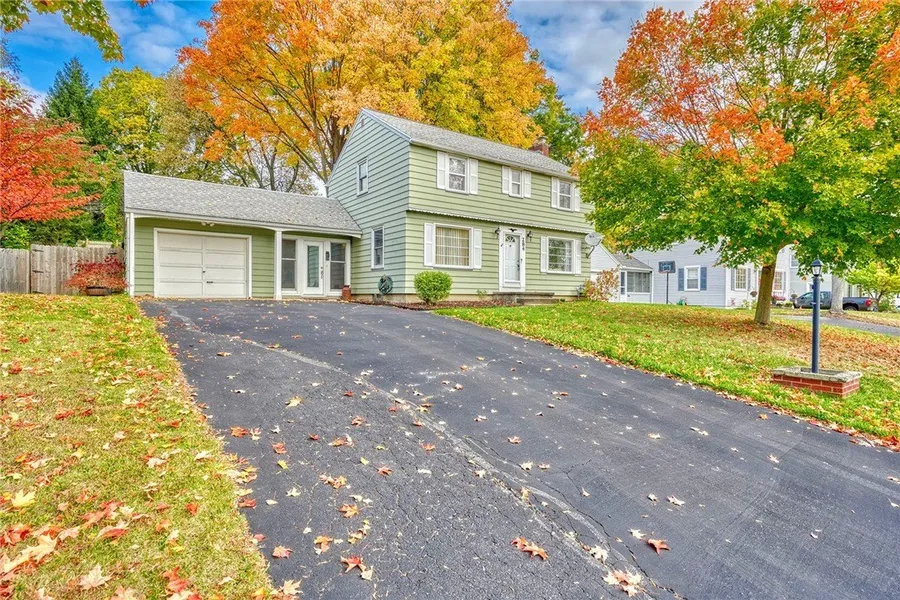 LOOK NO FURTHER. MOVE RIGHT INTO THIS 1,528 SQ. FT. SIDED CENTER ENTRANCE COLONIAL!THE FIRST FLOOR INCLUDES A HEATED SIDE ENTRANCE BREEZEWAY, WITH MANY POSSIBLE USES, THAT DIRECTLY ACCESSES THE ATTACHED GARAGE, THE REAR YARD AND THE KITCHEN. THE RECENTLY UPDATED KITCHEN HAS AN ABUNDANCE OF CABINETRY, LAMINATE FLOORING,A BREAKFAST BAR,LARGE PANTRY & ALL APPLIANCES. THERE ALSO IS A POWDER ROOM THAT WAS REMODELED IN 2021. THE FORMAL DINING ROOM HAS 2 BUILT-IN CHINA CABINETS & HARDWOOD FLOORS. ENTERTAIN IN THE SPACIOUS LIVING ROOM WITH HARDWOOD FLOORS AND A FIREPLACE THAT WAS WOODBURNING BUT PRESENTLY WITH AN ELECTRIC DECORATIVE LOG SET. YOU WILL LIKE THE CONVENIENCE OF THE FIRST FLOOR DEN/OFFICE WHICH HAS BUILT-IN BOOKCASES AND AN ATTRACTIVE BOW WINDOW OVERLOOKING THE PRIVATE BACKYARD. THE 2ND FLOOR BOASTS 3 GENEROUS SIZE BEDROOMS AND A FULL BATH. OTHER HIGHLIGHTS INCLUDE A PARTIALLY FINISHED BASEMENT WITH GLASS BLOCK WINDOWS, A 200 AMP ELECTRIC SERVICE,NEW FURNACE AND CENTRAL AIR INSTALLED IN 2023*IN THE BREEZEWAY THERE IS A MINI SPLIT WHICH WAS ALSO INSTALLED IN 2023*DOUBLE PANE VINYL WINDOWS THRU OUT*PATIO IN 2023*TEAR-OFF ROOF APPROXIMATELY 12 YEARS YOUNG*GREENLIGHT HIGH SPEED INTERNET IS AVAILABLE*SHORT WALK TO WEST IRONDEQUOIT SCHOOLS,SHOPPING,RESTAURANTS, THE TOWN HALL & I-SQUARE*ONLY MINUTES TO ROUTES 104 AND 590. DELAYED NEGOTIATIONS BEGIN ON TUESDAY 11/4/25 AT 2:00 PM