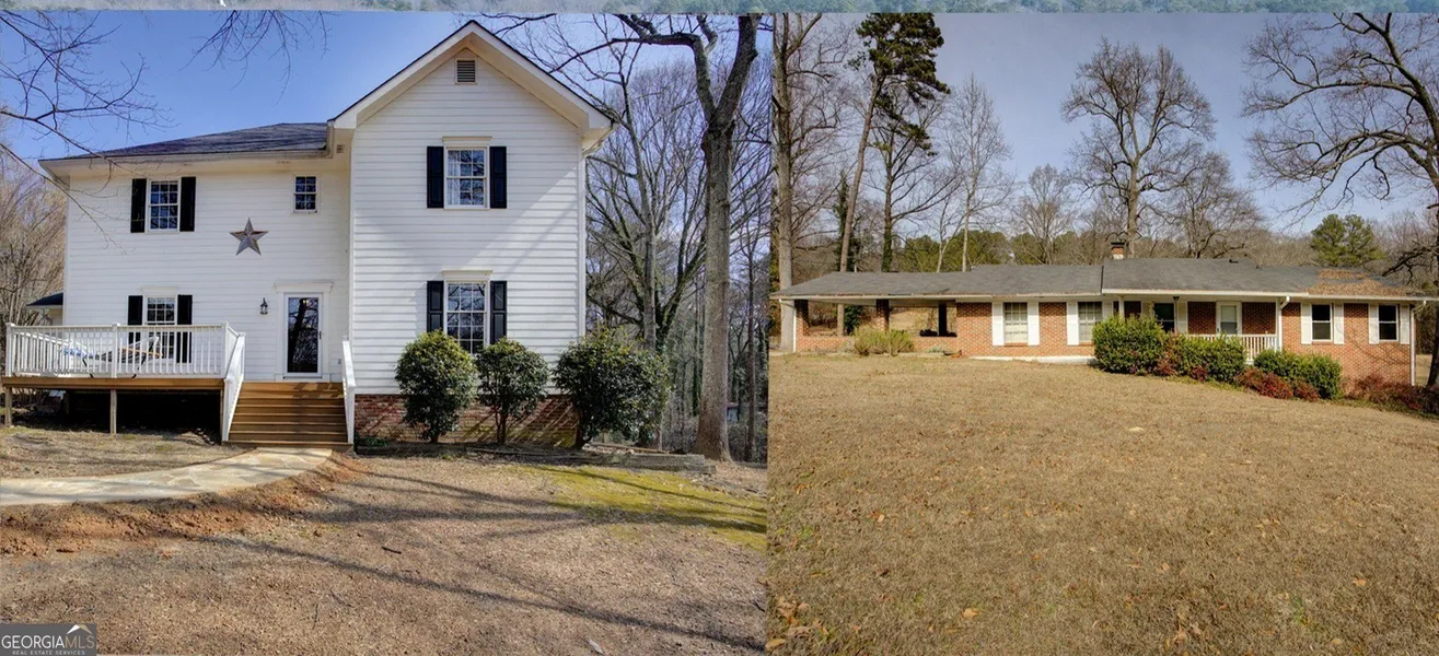 2 houses on over 5 acres with pond! Perfect family compound! Small Brick Ranch on front of property. 2 story House across the pond on acreage. 6 bedrm home has beautiful reclaimed hardwood floors from Boxcars!! Stunning kitchen w/gas range & grill open to family room w/brick fireplace. Huge Owners suite on main boasts private sitting room/office, huge BR w/fireplace, Clawfoot soaking tub/ sep shower & his/hers walk-in closets. 4 BR 2BA on 2nd floor and Man Cave/game room in Basement; Deck spans length of house w/hot tub and view of grounds. Barn includes chicken coop, & fenced paddock with water. Long driveway gives privacy. Small Brick house is perfect for In-Law or 2 separate apartments. 2BR/1.5BA on main floor, 1BR/1BA in finished basement. Both levels include kitchen and large Living rms. All Located just minutes to Award winning schools, shopping, Eateries and I-20.