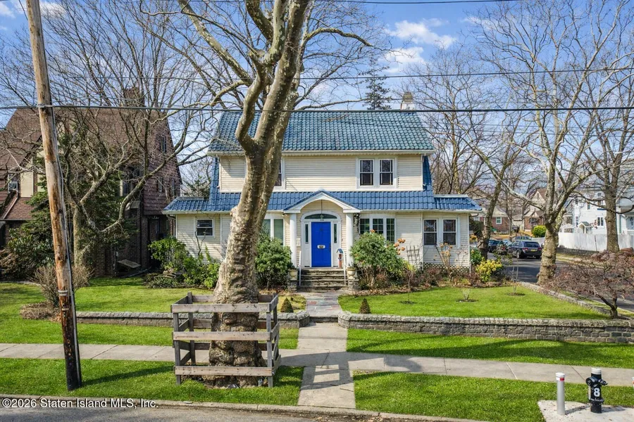 This stately and beautifully maintained Center-Hall Colonial set on a lush and sprawling 7,700+ sq. ft. corner lot. Property in prime West Brighton neighborhood, near Randall Manor, Snug Harbor, Silver Lake Park, PS 45 Elementary School with G&T Program, OLGC and Forest Ave JCC. This 5-bedroom, 2.5-bathroom home offers timeless architectural charm paired with modern functionality. A welcoming foyer opens into classic layout, a formal living room with a wood-burning fireplace, hardwood floors with mahogany inlays, a spacious dining room, and a renovated kitchen with stainless steel appliances, gas range and wood cabinetry. The kitchen connects to a screened porch that overlooks the fenced-in backyard. Off the kitchen is a versatile first-floor bedroom or home office, plus a half-bath; the finished basement features additional living space, a full bath, wet bar, laundry, and ample storage....