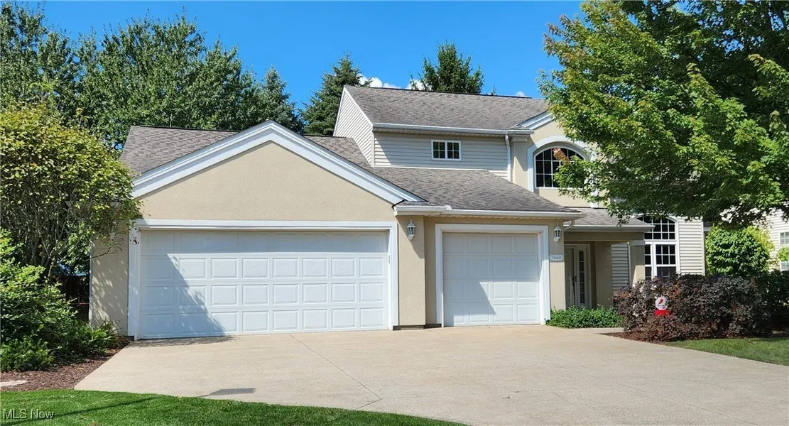 Younger FREESTANDING cluster home with a FIRST FLOOR PRIMARY SUITE AND A THREE CAR ATTACHED GARAGE. Covered front entry opens to the light filled vaulted great room and adjoining dining room. Oversized eat in kitchen has maple flooring, granite countertops, pantry cupboard and stainless appliances-refrigerator replaced 08/25 and dishwasher which has barely been used. Sliding door from kitchen opens to patio and wooded privacy w/ fencing behind. Primary suite has remodeled glass shower and soaking tub, double granite tops and newer backsplash, as well as a large walk in closet. Upstairs there are 2 additional bedrooms that share a bathroom with tile flooring and a granite double sink vanity. All newer windows on the first floor except window over the kitchen sink. First floor powder room completely remodeled with marble flooring and crown molding. Furnace has a newer circuit board and motor. Water pressure booster included! Added additional insulation in garage and attic. Garage temperature stays at 45/50 degrees in the winter time and has hot and cold water. New glass (2025) in upstairs bathroom. Exterior trim painted in 2024. First floor laundry room with washtub and cabinets. Hot water tank (2018) Kitchen, primary bathroom and powder room have 9 ft ceilings. Convenient water pressure booster included in the sale. Additional visitor paring across from home. Walk or bike to Liberty Park and Liberty Nature Center-less than one mile. Short drive to Glen Eagles Golf Course, Twinsburg Water Park and Twinsburg Recreation Center with indoor pool, track and all types of classes. Minutes to 2 grocery stores, shopping, freeway, medical facilities, schools, library & community gardens. Twinsburg is home to the world- famous Twins Day Festival. Summer concerts in the park. Exterior Point of Sale Compliant. Monthly maintenance fee of $170 includes landscaping and snow removal. Two guest parking areas very close by. THIS HOME DOES NOT HAVE A BASEMENT.