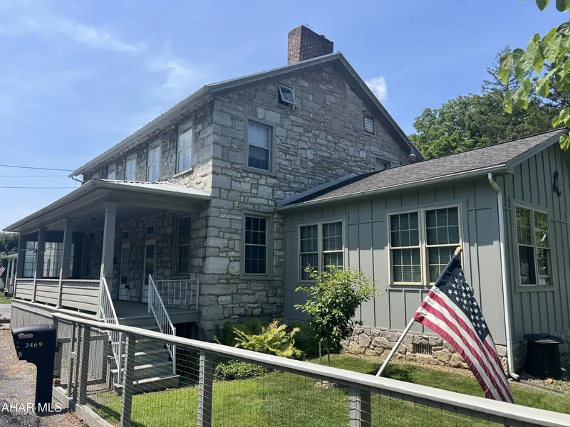 Historic Stone Estate with Guest House, Pool, and Business Potential in Bedford County. Step into timeless charm and unexpected versatility with this remarkable 4-bedroom, 3-bath stone residence dating back to 1853, gracefully situated on 1.12 acres in Waterside - the heart of South Woodbury Township. Meticulously crafted with enduring materials and thoughtful updates, this 2,672square foot home offers both historical character and modern comfort. Inside, you'll find a grand central foyer, soaring ceilings, original hardwood floors, deep-set windows, and intricate woodwork that reflect 19th-century craftsmanship. A spacious sunroom invites natural light and relaxation, while the cozy family room is perfect for gathering. Recent upgrades include replacement windows and a durable metal roof, enhancing both efficiency and longevity. Step outside to a private in-ground pool with serene landscaping and a koi pond-a peaceful setting for summer evenings or entertaining guests. Adding even more value, the property includes two additional living spaces: a charming brick Carriage House and a separate barn style apartment, offering ideal accommodations for extended family, rental income, or a potential small business. With no zoning restrictions and a prime location along Woodbury Pike, this property lends itself to a wide range of uses-from a private residence or vacation retreat to a boutique bed & breakfast or home-based business. Opportunities like this are rare. Discover the unmatched blend of history, utility, and potential at this distinctive Bedford County estate.
