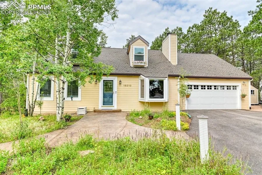 Welcome to this charming Walden home on over one acre, perfectly situated at the end of a peaceful cul-de-sac. Flower boxes on the dormers add to its inviting curb appeal, with a large front yard for play & a wooded backyard to explore-this property truly shines with pride of ownership. This versatile 5-bedroom home offers multiple configuration options. The bright main-level bedroom features double closets & sits next to a full bathroom, perfect for guests or multi-generational living. Upstairs, the private master suite includes a spacious bedroom, full bath with double sinks, & office that could also serve as a nursery. Step into the living room, where a cozy wood-burning fireplace with a hidden garage pass-through for easy wood loading is flanked by custom built-in bookshelves. The updated kitchen boasts quartz countertops, stainless steel appliances, double ovens, & multiple seating areas, from the breakfast bar to the formal dining room. Bay windows frame serene views of the property and bring in abundant natural light-ideal for wildlife watching. Downstairs, brand-new carpet highlights a large family room with space for a gym, plus two bedrooms & a 3/4 bath, perfect for kids, guests, or a home office setup. Outside, enjoy the best of both worlds: a sprawling front lawn, plus tall Ponderosa Pines offering privacy and shade. The property has original covenants but no active HOA, giving you flexibility with room to build a detached garage or workshop. Recent updates-new A/C, Class 4 roof, driveway, RV pad, and fresh paint-make this home move-in ready. Located in the highly sought-after Walden neighborhood, you'll have access to trails, stocked ponds, and walkable schools (Kilmer Elementary and Monument Academy). All this, with quick access to both Colorado Springs and Denver, plus nearby schools, shops and restaurants. Don't miss this rare opportunity to enjoy Black Forest living with modern updates, space to grow, and unbeatable convenience!