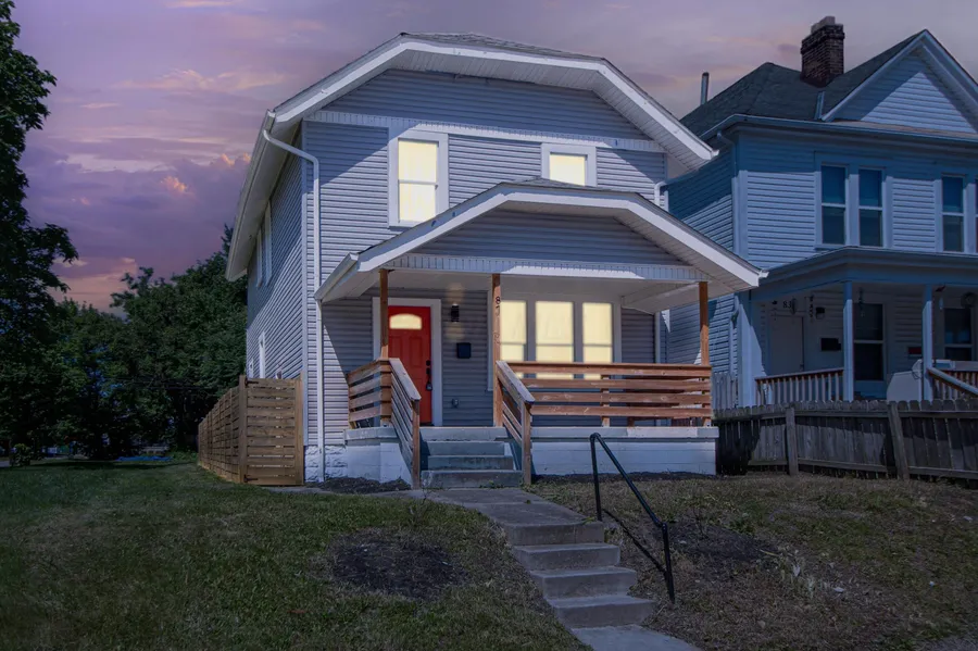 Stunning! Welcome to Franklinton! Featuring sun filled rooms, gleaming LVP flooring, and fully renovated from top to bottom with too many updates to list including: furnace, AC, windows, roof, & more! White shaker kitchen cabinetry, granite counter-tops, back-splash, stainless steel appliances and range hood complete with eat-in breakfast bar! Soaring cathedral ceilings upstairs with 3 bedrooms and 2 full bathrooms fully remodeled including private en-suite with his/her's sinks! Step out back onto your deck overlooking your private and fully fenced XL yard ideally situated on a corner lot! With clean lines, well-appointed finishes & fantastic location your options for entertainment, food & shopping are endless, while keeping the peace & quiet at home!