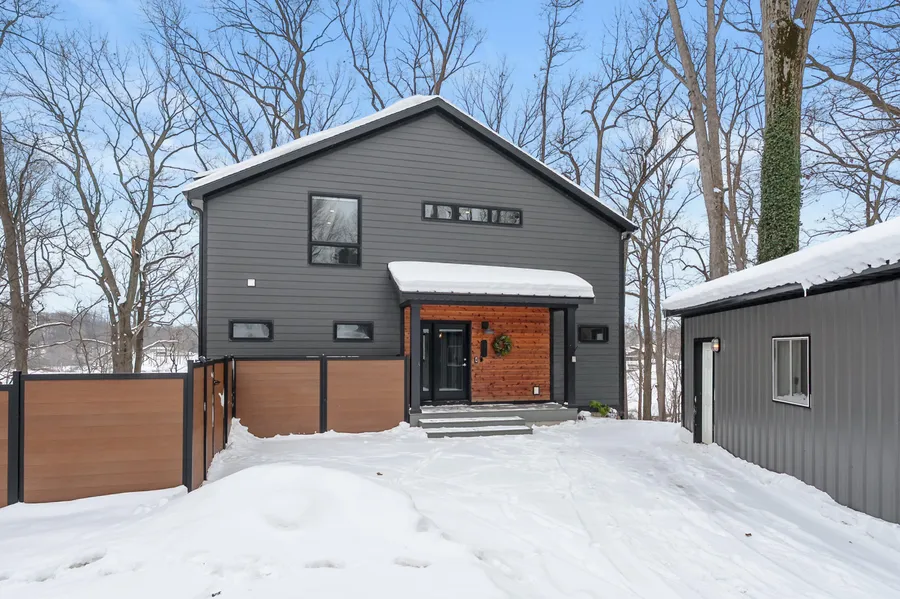 This breathtaking custom built contemporary home on Singer Lake is a true showstopper! It has it all! Situated on a wooded 1-acre parcel, this exceptional home has 107 ft of water frontage and is in the heart of wine country and only about 10 minutes from Lake Michigan. Built in 2019 using the most thoughtful touches and high end finishes, this home features soaring ceilings and dramatic windows to capture the view. Living room has upscale ceiling to floor electric fireplace with cozy conversation area, , dining area and gourmet kitchen with center island with wrapped leather quartz counters, all with LVP flooring. Upstairs there is an expansive loft with multiple sleeping areas and a full bathroom. Walkout level is finished wth a large recreation area, sitting area, full bath, and plenty of storage. Multilevel deck leads down to the lake with covered hot tub area and outbuilding for lak...