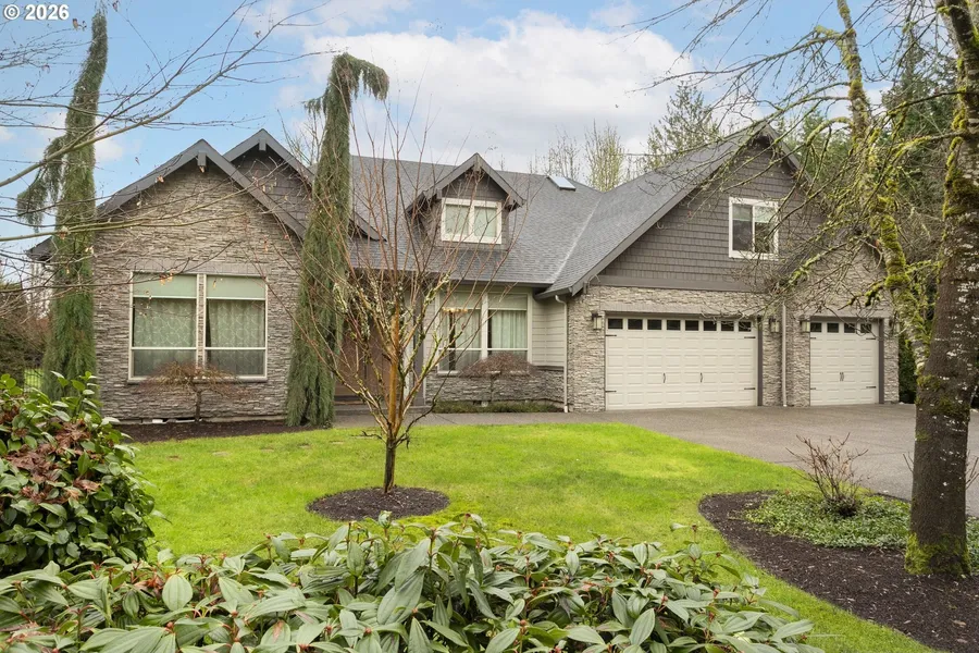 Set on over an acre of fully fenced and gated grounds, this exceptional 4,000+ sq ft home offers privacy, elegance, and room to live and entertain. Built in 2015, the expansive floor plan features five bedrooms plus a dedicated office, with the primary suite conveniently located on the main level. High ceilings and coffered details elevate the living spaces, while custom built-ins add both beauty and function throughout, including a den designed for work or relaxation. The gourmet kitchen anchors the home with premium finishes and flows seamlessly into both casual and formal dining areas, ideal for gatherings large and small. The bathrooms have been beautifully updated in 2024, adding a fresh, modern feel. Outdoors, the property offers a tranquil water feature, blueberry bushes and grape vines, raised garden boxes, shed and ample space to enjoy the gated, fully fenced acreage. A remarkable opportunity to enjoy refined living with the freedom and privacy of acreage living.