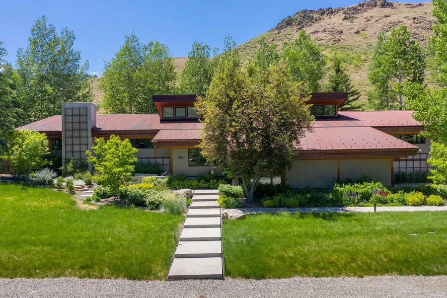 Built in 2004 and thoughtfully remodeled in 2023, this timeless contemporary residence by architect Jack Smith rests on 1.43 acres bordering Forest Service land. The gracious entry hall opens to one of Smith's signature water features, seamlessly blending the indoors with the natural surroundings. Every detail of the recent remodel reflects a complete modernization, elevating the home to today's standards of luxury and design. Featuring 4 bedrooms, 6 baths, 2 offices, and a 2 car garage with an exercise room & additional bike/ski tuning garage. All new furniture package can be negotiated into the sale. An AIA award winning architectural masterpiece.