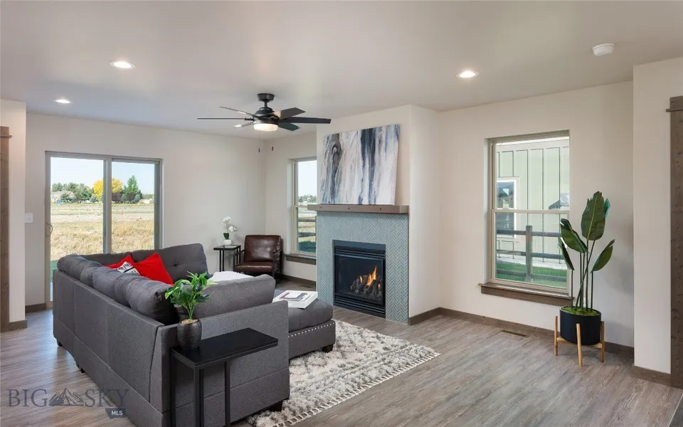 This brand-new home in The Meadows blends high-end finishes with smart design and sits just steps from future parks, trails, and the heart of Four Corners, just outside of Bozeman City Limits. Crafted by All About Homes & Land, this home features an open main floor designed for connection-whether you're gathering around the kitchen island or relaxing by the fireplace. The kitchen includes granite countertops, soft-close cabinetry, and plenty of prep space. Large windows frame open-space views and bring in natural light throughout the day. Upstairs, three generously sized bedrooms offer peaceful retreats, including a primary suite with dual vanities and a walk-in shower. A spacious landing provides added flexibility for a home office, reading nook, or play area. The backyard opens to community open space with direct access to the future four-acre park, complete with playgrounds, sports courts, and walking trails. A covered patio offers the ideal spot to enjoy Montana sunsets. Located in the growing Four Corners area with easy access to Bozeman, Belgrade, and Big Sky, this home offers both convenience and future upside. A new retail district with grocery and dining is on the way-making this location even more desirable. Ready for immediate occupancy.