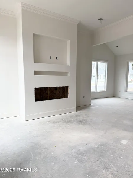 Refined living awaits in this 3-bedroom, 2-bath residence located in the gated Magnolia Trace community of Broussard. Offering 1,888 sq ft of thoughtfully designed open-concept living, the home features soaring cathedral ceilings, expansive windows, and a sleek fireplace adds contemporary style and ambiance. The designer kitchen showcases stainless-steel appliances, island, and walk-in pantry. The primary suite is a private retreat with custom cabinetry, double vanities, soaking tub, and separate shower. A split floor plan enhances privacy, while the covered side patio with built-in gas grill invites effortless entertaining. Community amenities include mature oak trees, pond with fountain, pet park, playground, basketball court, and complimentary lawn service. Estimated date of completion ~ April 2026.