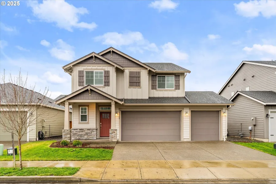 Discover modern living in this beautifully updated 4-bedroom, 2.1-bath contemporary home in desirable Brush Prairie. Built in 2021, this 2,342 sq ft two-story residence offers an open, functional layout with luxury vinyl plank flooring, wall-to-wall carpet, and a cozy gas fireplace. The stylish kitchen features built-in appliances, ample storage, and flows seamlessly to the living space-perfect for entertaining. The spacious primary suite and additional bedrooms are located upstairs for privacy. Enjoy central air, forced air heat, a 3-car attached garage, patio, porch, raised garden beds, and sprinklers. Situated on a level lot with public utilities, this move-in ready home combines comfort, efficiency, and contemporary design in a prime location.