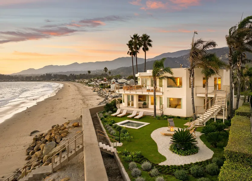 Floating above the Pacific & grounded in stunning design, the next level of Padaro Beach living has arrived. A statement of architectural artistry, this groundbreaking beachfront estate commands approx. 100 feet of rare ocean frontage. An expansive great room anchors the residence, where the kitchen, dining & living spaces all unfold naturally to an oceanfront terrace. The primary suite is private & luxurious w a large closet & spa bath. The resort living continues w 4 add'l ocean view bedroom suites, a gym, theatre & wine cellar. Sunlit patios, a fire pit, spa & private guest house are surrounded by lush gardens, creating a private oasis just steps from the sand. Welcome to the next wave of coastal living, where style & sea converge in a singular expression of California luxury