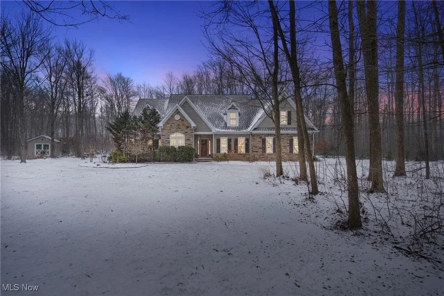 Step into an impeccably maintained home in Geauga County, nestled on 3.01 acres, and only 5 miles from the heart of Chagrin Falls. Fresh paint and refined finishes elevate every room. The kitchen features a ceramic backsplash with metallic accents, custom range hood, GE Cafe range 2023, dishwasher 2024, granite counters, and updated lighting. The open concept living includes an integrated Sonos system, hard wood floors, a powder room, office/bonus room and laundry room. This first-floor primary suite has an elegantly appointed ensuite with California Closets 2024, and designer lighting. An ideal second level layout has three additional bedrooms, a full bath, a spacious loft, and a versatile bonus room. Every space has been thoughtfully updated to deliver comfort, style, and modern functionality. The lower level is the reason why you won't be able to walk away from this home. Offering custom built-ins, an Art Deco inspired wet bar with marble tile and brass accents, quartz counters, beverage center, wine storage, electric fireplace with Italian glazed surround, LVP flooring, workout zone, hidden workshop room, and a multi-purpose room with Murphy bed. A beautifully finished 3/4 bath with Japanese picket tile completes the space. The exterior impresses with curated landscape lighting, an arborvitae lined drive that was resurfaced in November, raised garden beds, a fire pit zone, and a custom 14*14 screened in vaulted porch with porcelain tile with private access from the primary suite or patio. A matching 12*16 storage shed, custom 2024 play set complete the outdoor amenities. Mechanical updates: gutter guards, a 2019 sump pump with dual battery backups, new water softener 2024, tankless water heater 2023. This home blends thoughtful upgrades, luxury touches, and flexible living areas while enjoying your wooded protected wetlands that are home to wildlife galore! Convenient access to highways and all necessary amenities. ________________________________________