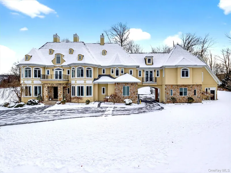 A delight awaits! Do you need space, privacy, and a prime location with top-of-the-line luxury upgrades? The house is a masterpiece - and has the bonus of 2 legal apartments, one above the 4-bay garage and the other is a ground-level 1-bedroom apartment. Both have full kitchens and full bathrooms. The apartment above the garage has a nice deck overlooking the backyard. The views of the Schunnemunk Mountain Range are framed in the formal living room and first-floor bedroom. The first floor has 10 ft. ceilings, custom crown molding, trey ceilings,(heavy-thick) impressive leaded glass double doors, curved archway doorframes, hardwood and marble floors, a custom medalion inlay, custom stairway, floor-to-ceiling windows, bay windows, the largest dining room ever, bultlers pantry, and 2 fireplaces. Upstairs, the ceilings are also 10ft tall, and you will find TWO master suites with bay windows and a fireplace in each room. This is important - you have 2 laundry rooms, one in the basement and one on the second floor. There is a really cool circular room accessed by a catwalk overlooking the grand 2-story family room below. Let's go to the basement now: Oh My! 11 -12 FT ceilings, a wall of windows, 2 bedrooms, 2 full bathrooms, a media room, an exercise room, a huge room that can be a game room, a private entrance from outside, a library room, and so much storage room, you'll be lost. The property sits privately at the end of the cul-de-sac and shares the first part of the driveway with the neighbor (35 Balmoral is to the left). Nature is happy with the mature landscaping, beautiful trees, wildlife visits, and displays of stunning mountain views. The house was made to handle a lot of people. The mechanical systems, water treatment systems, and water storage/distribution was carefully planned and are impressive. The total number of bedrooms, bathrooms, and sq. ft. Includes the 2 apartments. All interested visitors must be pre-approved financially before appointments.