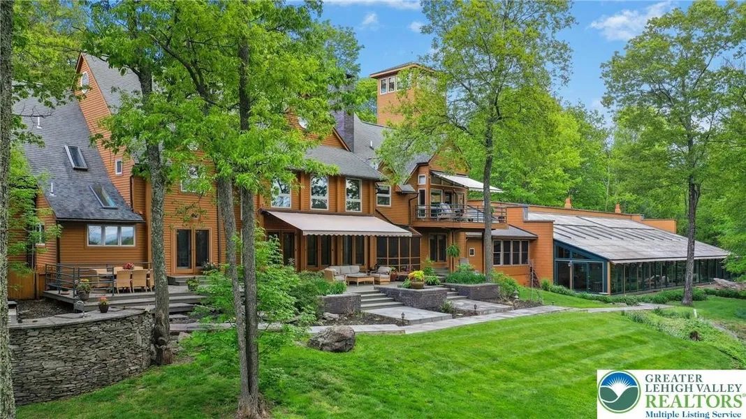Stunning Pocono Mountains home with EXQUISITE INDOOR POOL AND FULL SIZE HOME GYM! Centered on 73 acres, this remarkable 13,000 sqft residence showcases the craftsmanship of an earlier age & the drama & conveniences of modern construction, all meticulously curated & maintained. The great room was designed to blend architectural character with cathedral ceiling, floor-to-ceiling fp, rosewood floors & walls of windows. A thoughtfully planned kitchen, with high-end appliances & amenities, opens to a patio & outdoor kitchen. For entertainment the lodge offers a media room, bar room, library, commercial gym & indoor saltwater pool & spa with heated floors, bar, fireplace & 2 bathrooms. The primary suite is a sanctuary with sitting area, fp, dressing area, marble bath & dual walk-in closets. A private balcony has views of distant mountains. There are 5 additional Brs, including 2 main-floor Br suites. An observation tower rises 40' to its pinnacle on the 4th level, the perfect place to be eye level with soaring hawks. A 1700s barn was reassembled on the property to provide HEATED GARAGING for 12+ cars & collections with heated floors & separate security system. LOCATED NEAR SEVERAL POPULAR SKI DESTINATIONS! Grocery stores, restaurants, resorts & ski slopes are a 15 minutes drive & NYC is 2 hours.
