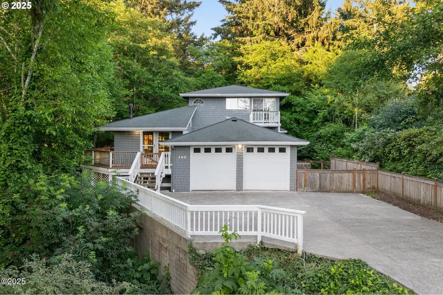Perched above Depoe Bay Harbor and bordered by the gentle flow of North Depoe Bay Creek, this custom-built coastal home offers a rare blend of privacy, charm, and natural beauty. Set on a spacious lot, the property features a fenced pet area and gated decks, making it ideal for animal lovers. Inside, you'll find a bright, open layout with large windows that frame sweeping views of lush greenspace and the harbor below. A cozy gas fireplace serves as a warm focal point in the living area-perfect for relaxing after a day of coastal adventures. The primary suite includes a walk-in closet and a classic clawfoot tub, while both the bathroom and utility room have been thoughtfully updated. Ample parking is available for guests or recreational vehicles, and a past property survey provides clarity on the boundaries. Out back, a Zen-inspired yard offers a tranquil retreat, with North Depoe Bay Cre...