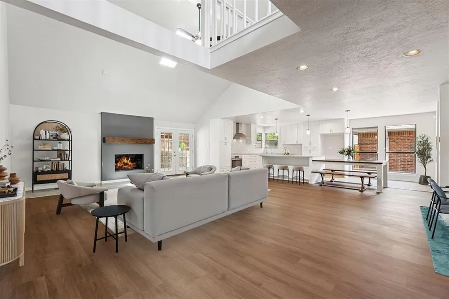 NEW PRICE on This beauty Nestled in the well-regarded Kingston addition of Edmond OK you will find this open concept 3 bed 2.5 bath design. A thoughtful blend of contemporary style and functional design. Fantastic for both relaxation and entertaining, this home opens into a spacious living area with dramatic ceiling lines, a welcoming fireplace, and seamless access to a stunning remodeled kitchen. Quartz countertops with an innovative island--activity table integration. The lower level also contains an open space great for dining or a casual lounge. The primary suite is very generously sized with sitting area, luxurious en-suite bathroom with dual sinks, walk-in shower, and large soaking tub. The 2 additional bedrooms located upstairs share a jack and jill bathroom and enjoy access to a versatile loft area perfect for a home office or play area. You will also find new flooring down and n...