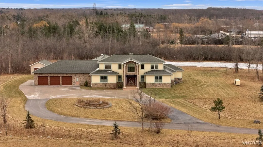 Set on 18.8 private acres, this expansive 5,725 sq ft (differs from tax records as not to include the 4,000 SF below grade partially finished basement) estate offers a rare combination of scale, privacy, architectural presence, and future upside. The property features 4 bedrooms, 5 full baths, and 2 half baths with a layout designed around both formal entertaining and everyday living. A signature grand stairwell framed by travertine-lined illuminated columns anchors the home. Interior highlights include a two-story great room with stone-adorned fireplace, a massive formal dining room, bamboo hardwood floors, rich oak trim throughout, pan ceilings with recessed lighting, and a gourmet kitchen with abundant granite counter space and an oversized eat-in breakfast nook. The primary ensuite wing includes a dedicated den, a four-piece bath, private commode and bidet, and generous closet space....