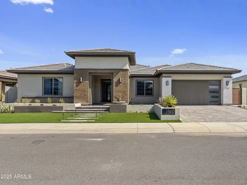 Beautifully upgraded one-of-a-kind single-level home in highly sought-after Waterston community. Thoughtfully designed for both comfort and functionality, this home features a spacious open layout with modern luxury finishes throughout. 4 bedrooms, 3.5 bathrooms, game room, flex area, den (potentially 5th bedroom). Lots of natural light with ideal north-south exposure. 4 car garage. Seller has invested extensively in high-end indoor and outdoor upgrades, showcasing true pride of ownership. 1) $160K+ upgrades from builder: 12-foot ceiling w/ oversized windows, elegant iron door, wood-look porcelain tile flooring throughout (no carpet), high-end chef's kitchen (big upgrades on cabinets and drawers, countertop, hardwares, appliances, etc) & premium materials in all bathrooms (huge glass walk in shower w/ rain shower heads, higher premium tile coverage in other bathrooms, quartz countertop everywhere), step away side yard, 7.1 surround sound in family room and patio, 5.4.1 pre-wire in game room, surveillance pre-wire around the house, etc. 2) $200K+ outdoor features: custom low maintenance landscape design w/ unique curb appeal, oversized pool & spa w/ premium in-floor cleaning, baja shelf and elegant water features (sheer decent, water spillway), basketball court w/ PRO hoop, premium travertine & artificial grass throughout. 3) Countless additional custom upgrades seller made after move in (Seller didn't track the expenses, but you can easily tell from the luxury): highly functional built-in closets all bedrooms, industrial-modern entertainment center w/ electric fireplace, sitting storage, pull-down TV & hidden shelving, under cabinets lights, built-in desk, lighting shelf and reading nook in master bedroom, highly functional laundry (adjustable ceiling drying rack, countertop, water sink) and mud room (hanging, storage and sitting), accent walls, electric bidets w/ warm water in all bathrooms, premium metal cabinetry, work bench, full size refrigerator all fit perfectly in 4-car garage, Tesla EV charging... too many to list! Waterston is a master planned community with lake, community pools, clubhouse, trails, fire-pit, barbecue, splash pad, playground, basketball court & more! Great location with top schools near by, shopping centers around.
