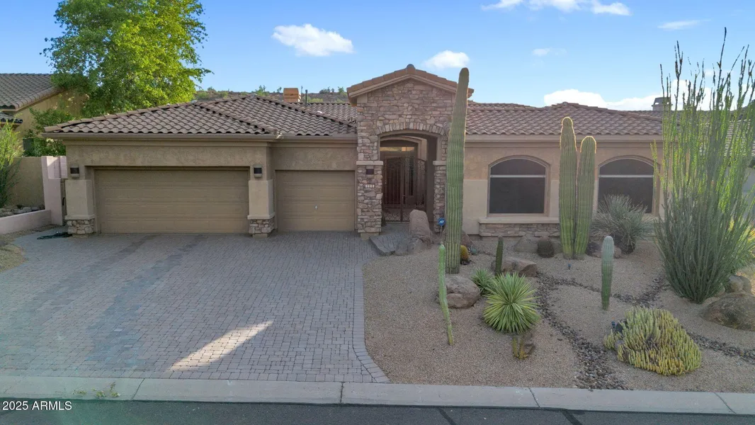 Toll Brothers Hillside Beauty with Unmatched Views! Nestled on a quiet cul-de-sac hillside lot, this stunning home offers sweeping 360 degrees mountain views, including the majestic Superstitions. From the moment you enter through the charming courtyard, you'll feel the warmth, character, and class this property has to offer. Inside, you'll find timeless details like shutters throughout, color-washed walls, built-in shelving, and unique Western-inspired touches. Additional highlights include: heated pool, new AC, gutters, a 3-car garage, pavered driveway and patios, and easy access to nearby hiking trails. The inviting entry opens to a soaring formal living and dining space (or flexible bonus area), leading into a spacious family room with patio access. The open-concept kitchen is a chef's dream featuring granite counters, light wood cabinets with textured finishes, two built-in ovens, an electric cooktop, walk-in pantry, breakfast bar, and a sink perfectly positioned to capture backyard mountain views. The primary suite is truly a retreatlarge enough for a king bed plus a sitting area, complete with a spa-like bathroom boasting a soaking tub, oversized walk-in shower, dual vanities with custom lighting, and a walk-in closet the size of a bedroom. A separate guest wing hosts three generously sized bedrooms and a full bath with dual vanities and a tub/shower combo, providing privacy and comfort for family or visitors. Step outside to your private Arizona oasis. The backyard features a heated pool with a waterfall, fire pit, extended paver patios, a covered area for shade, and lush desert landscaping highlighted by towering saguarosall with unobstructed mountain views. This home perfectly blends luxury, charm, and the beauty of Arizona living.