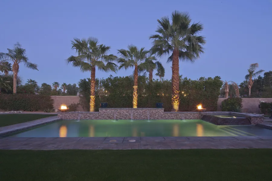 LEASED 1/1/25-3/31/25 Entertainers dream for your home away from home!! Remodeled modern design 4 bed, 4 bath 3400+ sq ft home w/ separate office/Bedroom. Situated on over a 1/2 acre corner lot!! Open concept great room welcomes you w/ 14' ceilings, modern ceramic tile floors, over sized windows including a panoramic folding patio door giving access to an amazing pool and back yard. Remodeled gourmet kitchen has oversized island, granite tops, high end SS appliances, custom lighting and plenty of cabinet space. The family room has built in entertainment center & corner fireplace w/stone wall accent. Huge master suite has oversized windows w/ amazing views of the back yard, access to back patio. Master bathroom has custom tile floors, freestanding soaking tub, his and hers floating vanities along with a stunning custom tile shower featuring two shower heads! The back yard has to be seen to believe! Rectangular Pebble Tec salt water pool that has built in fire bowls, spacious spa, separate fire pit area, plush landscape w/ custom landscape lighting, concrete walking path as well as seating area, paver patio area w/built in TV. This home has the floor plan and lot size to make it a very comfortable and special home. A great home for your home away from home! Call for a private showing!