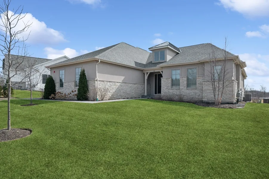 Nestled in the heart of Westleigh Farm, this exquisitely upgraded ranch home offers a seamless blend of elegance, comfort, and modern luxury. Designed for effortless living, it features a finished "English" lower level that maximizes natural light, along with a three-car side-attached garage for convenience. The open floor plan is highlighted by 10-foot ceilings, rich French herringbone chevron floors, and a sunny southern exposure that warmly fills the space. The spacious living room, centered around a gas fireplace, flows effortlessly into the dining room and an incredibly upgraded chef's kitchen, complete with custom cabinetry, an extra-large iceberg quartzite island, a Wolf 8-burner dual oven range, and a True commercial refrigerator & freezer. A wet bar with a wine fridge marks the entrance to the sunroom, a serene retreat that opens onto a gigantic deck overlooking picturesque ponds and lush greenery. The primary suite is a private oasis, featuring an opulent marble bath with dual vanities, a separate Kohler soaking tub, an oversized luxury walk-in shower with body spray systems, and a spacious walk-in closet. The main level also includes a large den, a second ensuite bedroom, a generous laundry room, and a separate mudroom. The finished lower level expands the home's livability with a large recreation area, two additional bedrooms, a full bath, an exercise room, a glass-door lounge, and ample storage space. Within 47 acres of naturally stunning landscapes, Westleigh Farm is a private, low-maintenance enclave featuring walking paths, peaceful ponds, a picnic park, and a charming Garden Lodge for private gatherings. Ideally located, it provides easy access to Lake Forest's vibrant town center, fine dining, boutique shopping, theater, parks, bike trails, major highways, and Metra access. This home offers an unparalleled beauty, convenience, and tranquility lifestyle in one of Lake Forest's most desirable communities.