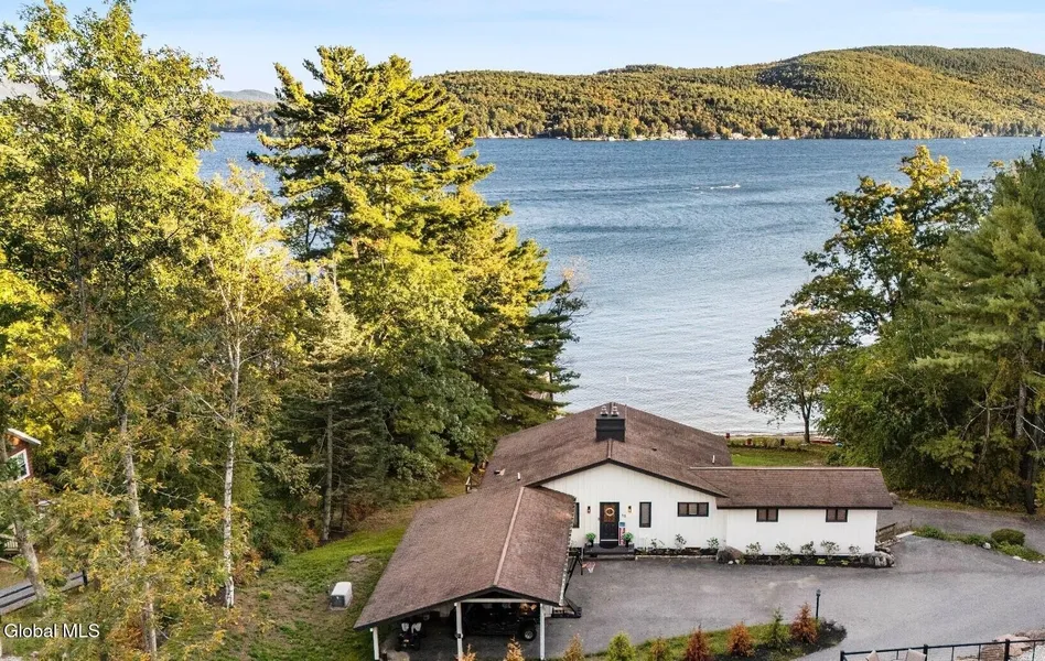 Lake George lakefront home situated on 1.4 acre lot in a quiet bay w/203ft of shoreline & a boathouse that features a spacious sun deck & space for 5 boats. Fully renovated w/modern farmhouse interior, this lakefront retreat offers 4BR, each w/it's own ensuite bath. The open floor plan on the main level is designed for effortless entertaining, w/a panoramic door that frames the lake & invites the outdoors in. The beautiful kitchen features a large island perfect for gathering, flowing seamlessly into the living room & out to the deck overlooking the lake. Every BR offers a view of the water, making the lake a constant backdrop. Enjoy sandy swimming, breathtaking views,& the unmatched lifestyle lakefront living can offer. Ideally located between LG Village and Bolton Landing!