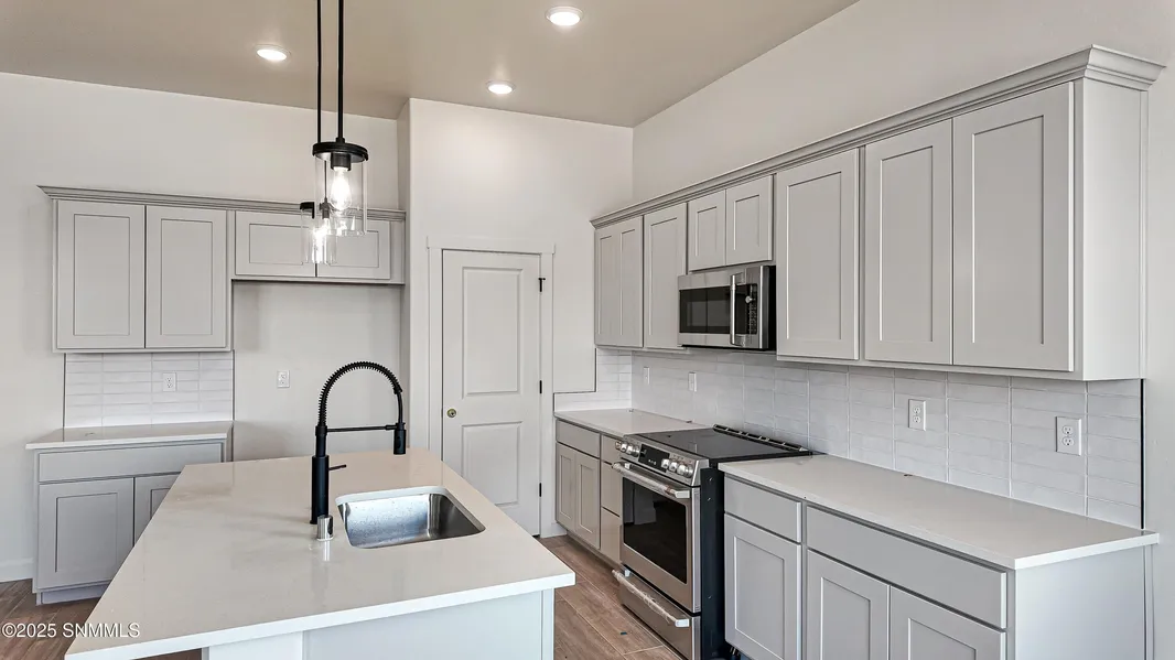 Discover this stunning 4-bedroom 2 car garage French Brothers home in the sought-after Metro Arcadia subdivision, just blocks from Red Hawk Golf Course in Las Cruces, NM. This energy-efficient, all-electric home boasts a kitchen with stainless steel appliances, granite countertops, sleek cabinetry with crown molding, and striking deco tile accents. Tall ceilings, modern lighting, brushed nickel hardware, tall baseboards, and upgraded carpet with premium padding add a luxurious touch. The spa-like primary bath features a soaking tub, dual sinks, and a deco tile to set it apart. Built with 2x6 exterior walls, a high-efficiency heat pump furnace, programmable thermostat, water-saving fixtures, and an insulated garage door with opener, this home offers both comfort and savings. Located in a vibrant master-planned community near schools, parks, shopping, and dining--this exceptional home blen...