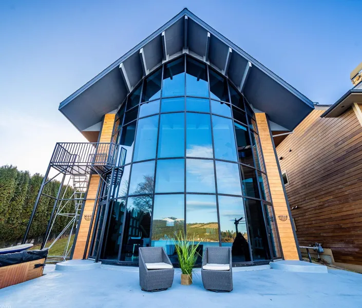 Great price on this dream lakefront home on Liberty Lake-perfectly positioned to enjoy sweeping lake and mountain views in every direction. Designed for comfort & connection to the water, this home features soaring ceilings, open living spaces & expansive windows with privacy glass that provide natural light while maintaining a sense of seclusion. The main level includes a spacious kitchen w/ walk-in pantry, open dining & Theater/4th bedroom flex option. All with effortless access to the lakeside patio-ideal for entertaining or relaxing with friends. The primary suite overlooks the lake & offers a cozy fireplace, generous bath & three walk-in closets. Upstairs provides flexibility with 2 bedrooms, vaulted living area, kitchenette & more stunning views. Outside, the gently sloping yard leads to a sandy beach-perfect for swimming, paddle boarding or watching sunsets & fireworks. With the f...