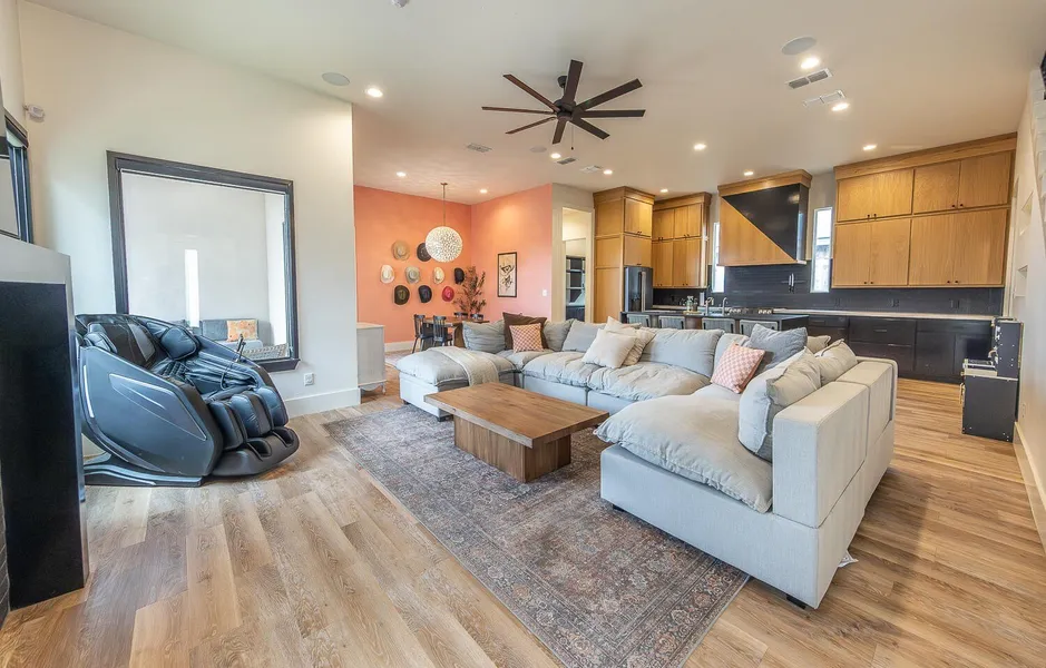 Welcome to this stunning former 2020 Parade of Homes property in the exclusive gated community of Cantera Estates in North Lubbock. Situated in Frenship ISD, this 3-bedroom, 2.5-bathroom home with a 2-car garage offers the perfect blend of modern design and everyday comfort. Step inside and you'll find soaring ceilings, an open-concept layout, and designer finishes throughout. The spacious living room flows seamlessly into a chef-inspired kitchen featuring sleek cabinetry, a striking vent hood, a large island with seating, and premium appliances. Natural light pours in through thoughtfully placed windows, creating a warm and inviting atmosphere. The isolated primary suite is a retreat of its own, with backyard access, a spa-like bathroom complete with a soaking tub, walk-in shower, and dual vanities. Additional bedrooms are generously sized and flexible for guests, kids, or office space....