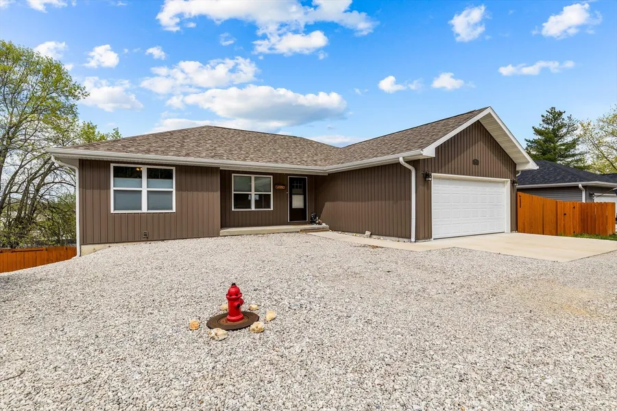 A MUST-SEE CUSTOM HOME (2-1/2 years old) to fully appreciate all the unique details, including a nearly private drive that serves a few houses. Further advantages to taking a look: 1. The potential for a multi-family dwelling: adult children, mother-in-law quarters, etc. 2. Real potential for a 2nd income in the walk-out basement area (enter from garage into laundry and a door added between laundry and living room- cheap fix and with additional kitchen equipment it could be perfect) 3. Another interesting feature is its close proximity to Springfield, MO via a divided highway, which would make for an easy commute to the airport, retail shops such as Costco/Sam's Club, restaurants, and entertainment. 4. OTHER pluses are the open concept between living area, dining, and kitchen, the vaulted ceilings in the living area, a deck off the dining area, lots of kitchen cabinets, counterspace, a nice-sized island, and a walkout from dining area to an elevated deck with a view. The basement area, as it currently exists, is full of storage, a huge closet area, a living area, a bedroom with an ensuite, and a walk-out to the fenced backyard. Again, don't miss this jewel of a home in a small town, with so much extra to offer.