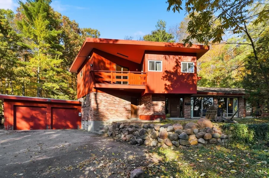Mid Century Modern gem nestled up to Indian Hill on 1+ rolling wooded acres! Wide open interior spaces, sprawling Primary suite, 4th bedroom has living area and separate entrance that flexes lots of possibilities! The grounds provide play space and privacy yet just a short walk to ALL Mariemont has to offer. House needs updating but has gorgeous setting and soooooo much potential! Make this one your forever home. Property to be sold as is.