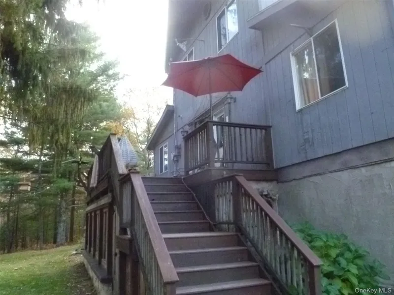 This contemporary 2 story offers a country style home with a stone fireplace and an interesting lot. The 2 floors of living space are connected by a spiral staircase. The first floor is heated by forced air ductwork and the second floor is heated by a heat pump. The large master bedroom, on the second floor has cathedral ceilings and 2 closets. The full walk-out basement offers possible expansion opportunities. There are solar panels on the roof that are leased. The lot offers panoramic views to the west from the back yard.