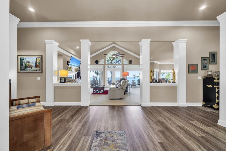 PARADISE FOUND! From the moment entry is made through this gated estate, a sense of peacefulness and tranquility transcends. One is greeted by Majestic Oaks, Magnolias, Pines and Azaleas as the circular drive leads to the handsome, quality built waterfront home where quality meets comfort in perfect style. Every detail from crown molding to garage storage has been lovingly updated and maintained. Magnificent views abound from oversized brand new storm rated windows extending across the entire Intercoastal Waterway/Sound side of the home; and the veranda offers outdoor living to include gas grill, Blackstone griddle & Oni pizza oven, plus panoramic views of the Sound and a stretch of the undeveloped pristine Santa Rosa Islands ( peeks of the Gulf). The waterfront features ALL NEW SEAWALL, dock decking, metal boathouse roof, boat lift motors and water & electric to the dock. The dock inclu...