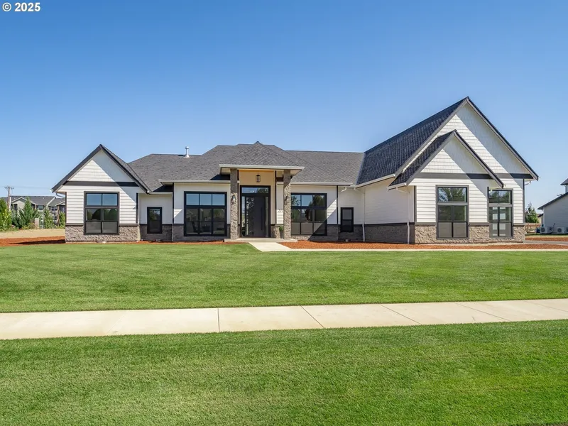 *Furnishings to be included with acceptable offer* Nestled in one of McMinnville's most upscale neighborhoods, this brand new, custom-built residence offers a lifestyle that feels like a year-round vacation in the heart of Oregon wine country. Set on just over an acre, the home blends contemporary architecture with thoughtful design, creating spaces that are as luxurious as they are livable. Step inside through the dramatic custom pivot door to soaring 10-foot ceilings and an open, light-filled great room that flows seamlessly to the chef's kitchen and covered outdoor living area. Entertaining is effortless with a 10-foot quartz island, brand new stainless steel appliances, including double ovens, two dishwashers, a warming drawer, an oversized refrigerator, and a huge walk-in pantry with custom built-ins. Every bedroom in this 3,400+ sq. ft. home is its own private suite, complete with a walk-in closet and attached bath. The primary retreat is a sanctuary all its own, featuring a private patio, spa-inspired bath with custom walk-in shower with built-in bench, double sink vanity, a makeup station, and a spacious walk-in closet. A dedicated home office provides flexibility for work or creative pursuits. Resort-style living continues outdoors, where a custom in-ground fiberglass pool with electric cover takes center stage. The beautifully landscaped yard offers both lush green lawn and low-maintenance ease with an in-ground sprinkler system. A dedicated pool house with bathroom and laundry hookups expands the possibilities, whether as a rec room, home gym, or guest space. Additional amenities include a 3-car oversized garage, tankless hot water heater, and custom cabinetry throughout, ensuring style and function at every turn. From the floor plan to the finishes, every element reflects a commitment to comfort, function, and style.