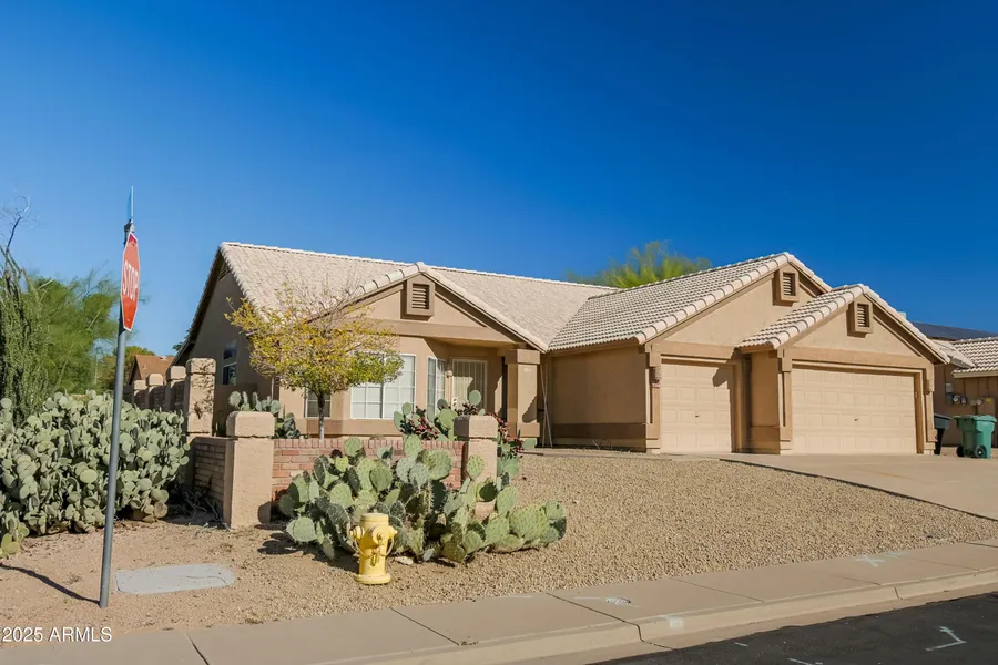 Well maintained single-level home on a spacious large corner lot. This 3 beds, 2 full bath residence features dual vanities in both bathrooms and a functional floor plan with a separate living room, a comfortable great room, and eat-in kitchen with an island plus newer refrigerator and dishwasher. The primary suite offers private access to the backyard and covered patio, ideal for outdoor entertaining. Add'l highlights include a 3-car garage with extra refrigerator, water softener, and a dedicated laundry room with washer and dryer included. Well cared for and ready for personalization, this home is ideally located within walking distance to Falcon Hill Park, Red Mtn Sports Complex, Falcon Hill Elementary, and Red Mtn High School, easy access to the Loop 202, shopping and dining