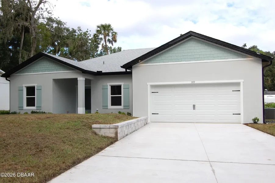 Great neighborhood and location in New Smyrna Beach!! No HOA! These brand new custom homes were built by a highly regarded local builder utilizing stem wall construction which is valued for its added strength and elevation. This is not one of the run of the mill national corporate builders, therefore, there is great attention to detail. Only 5 homes were built in this terrific location in New Smyrna. Oliver Estates is an established neighborhood with mature trees and landscape. Conveniently located just off of hwy 44 with easy access to I-95 to the West and just a short drive to the Canal Street shops and restaurants to the East. The beautiful NSB beaches and the Flagler Ave entertainment district are a 10 minute drive. The Mango model has a split plan with 1926 sq feet of living space. There are 4 bedrooms and 2 full baths and the main living area is open. The kitchen has an island with a breakfast bar and overlooks the living room and dining room. There is a double slider door off of the living room that lets you out to the covered lanai. In this model the main bedroom is on the back right side of the home and features a large ensuite bathroom with a double sink vanity and walk in shower enclosure. The 3 guest bedrooms and the full guest bath are on the left side of the home. The guest bath also features a double sink vanity and a tub/ shower. The centrally located utility/ laundry room has a door out to the 460 sq ft 2 car garage. This model features luxury vinyl flooring throughout the home and solid surface counter tops in the kitchen and baths. This home also features built in custom exterior lighting. Call for an appointment today,, again only 5 homes were built at this NSB location, only a few are left. The floorplan in the photos is the mirror image of this model which has a right side garage. The lot dimensions are 80x120.