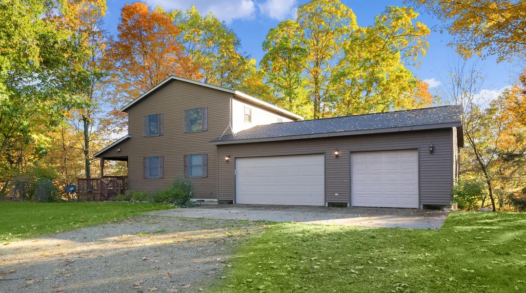 Stunningly beautiful, this 2,500 square foot riverfront home spans nearly 5 acres and boasts an impressive 325 feet of Muskegon River frontage! Freshly painted, this home offers 4 spacious bedrooms, three bathrooms, and a main-floor primary bedroom that features an oversized whirlpool tub in its attached bathroom. Step outside onto the wrap-around deck, which offers breathtaking river views, surrounded by a wall of windows and an open floor plan with cathedral ceilings. The kitchen, equipped with granite countertops and a large center island, is perfect for entertaining guests. Upstairs, you'll find two additional spacious bedrooms, a full bath, and a loft that overlooks the serene river. The finished lower level includes a cozy family room with a wood-burning stove, a fourth bedroom, a full bath, and a convenient laundry room. Don't miss out on the 3-season porch, the heated 3-stall gar...