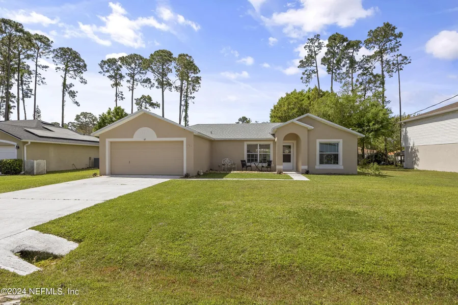 Make sure to check out the Virtual Tour for a 3D Model w/ Walkthrough, Floor Plan w/ Measurements, Video, & more! Welcome to Palm Coast B! This fantastic concrete block construction w/ steel studs (no flimsy wood-frame here!) home features a brand new roof and Solar Panels done in 2023! With vaulted ceilings, an open floor plan, and beautiful newer flooring, this is the DEFINITION of ''light and bright''.... and when we say ''well maintained'' that's an understatement! This home is ready for you to put your furniture down and put your feet up. Upon entry you'll find 2 large guest rooms and a full bath immediately to your right. Ahead you've got a great room w/ areas for dining, living, nook, and an immaculate kitchen. Through the living area you've got the master suite with beautiful tile floors and a custom bath. Inside Laundry/Utility and a 2 car garage round out the package! This beautifully maintained 3/2/2 sits on a landscaped .23 acre lot just MINUTES from restaurants, shopping, and and healthcare options and yet still quiet in the back yard. Don't miss your opportunity on this wonderful home! Schedule your showing today!