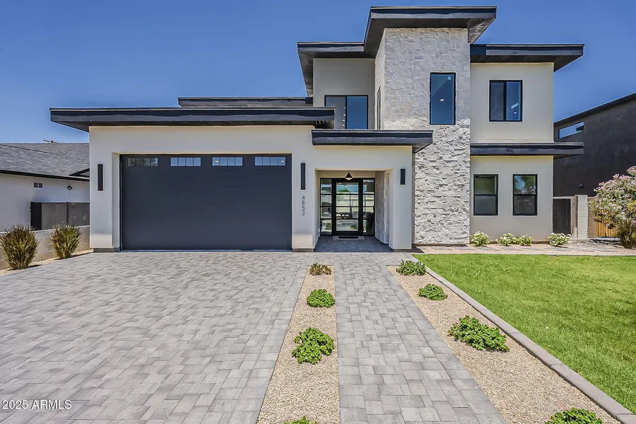 This newly built home in the heart of Arcadia blends fresh, modern design with a layout that truly considers how people live today. From the moment you arrive, clean lines and paver-lined driveway welcome you into a space that feels intentional at every turn. Inside, oversized patio sliders invite natural light to spill across the open main living area, effortlessly connecting indoor and outdoor living. The kitchen is a standout equipped with top-tier appliances, custom cabinetry, high-end finishes, and a built-in wine fridge that quietly elevates the space. Whether entertaining or enjoying a quiet night in, the design adapts with ease. A spacious and well-appointed laundry room upstairs adds convenience where it matters on top of gorgeous views of Papago and Camelback mountains, plus the primary suite includes its own laundry! Every detail room placement, storage, flow feels tailored, not templated. And when it's time to unwind, the backyard is ready, with a crisp pool and room to relax, gather, or simply enjoy the view. The garage is a standout, with height to accommodate four cars using a lift an ideal blend of space and utility for car lovers or gear-heavy households. This home isn't just new it's thoughtfully crafted from the ground up, balancing aesthetic with function in one of Phoenix's most desirable neighborhoods!