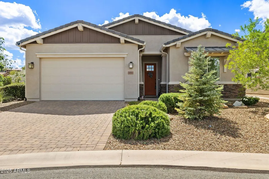 Beautiful 2 Bed + Den, 2 Bath home in the prestigious Prescott Lakes community. Enjoy Granite Mountain views from your professionally designed, low-maintenance backyard with hardscape pavers and a built-in firepit. The spacious interior boasts a large kitchen island with granite countertops, soft-close shaker cabinets, wall oven, gas range, and stainless appliances. Relax in the cozy living room with a stacked stone gas fireplace. Additional highlights include a large entry, wood-look tile flooring, mud/laundry room with built-ins, plantation shutters, and an oversized 2-car garage. The elegant primary suite features a spa-style bathroom with dual sinks, granite counters, walk-in shower, soaking tub, and a walk-in closet. Enjoy top-tier amenities: golf, tennis... pickleball, pools, spa, sauna, and dining. Ideal for active retirees, downsizers, or second-home seekers.