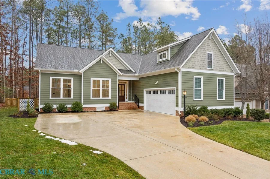 Like-New 4 Bedroom/3Bath in Brickshire priced below assessment! Why wait 10+ months to build when this almost-new 2023 Arts & Crafts Treyburn II by Main Street Homes is move-in ready and gorgeous? Designed for easy first-floor living, this home features an open concept family room with a gas fireplace, vaulted ceilings in the sunroom, 9' ceilings on the main level, and a desirable split-bedroom layout. The kitchen is a showstopper with rich chocolate cabinetry, striking granite countertops, a large island with seating, gas range, double wall ovens, stainless appliances, pantry, and sunny breakfast nook. Tasteful LVP wood flooring flows through the main living areas, with plush carpet in the bedrooms and bonus spaces. The private dining room has been enclosed with a door and picture windows, making it the perfect home office or formal dining space - owner's choice. The spacious first-floor primary suite offers an ensuite bath with handsome fixtures and generous walk-in closet. Upstairs, a fantastic 4TH bedroom or bonus suite complete with full bath, walk-in closet or flex room, and walk-in attic. Outdoor living includes a rear patio and fully fenced backyard with three access gates. Note: the backyard extends well beyond the rear fencing. On demand tankless hot water. Whole house HVAC ventilation feature for healthier air, and control your garage doors remotely using 'myQ' app. Brickshire amenities are exceptional: championship golf and pro shop, fitness center, pool and kiddie pool, tennis, pickleball, basketball, miles of paved trails for walking/jogging/biking, playground/tot lot, sports fields, horseshoe pit, pavilion, clubhouse, restaurant, conference room, card room, yoga room, RV Storage Rental Facility, and frequent social events. All this with convenient access to I-64 for easy travel to both Richmond and Williamsburg. Who doesn't want to live here?