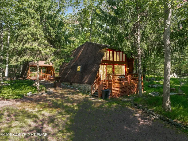 POCONO MOUNTAINS RUSTIC CHALET Charming Upgraded 2/3BR 2 Full Bath Cozy Chalet Home Features BRAND NEW ROOF (Sept 2025) Situated on 1.05 Acres in Quaint Wood Lot in Timber Hill w/ Large Back Deck, Covered Shed Ideal for Entertaining Guests Outdoors BBQ or Ideal for a Hot Tub Plus Waterfall Feature & Small Creek! Lovingly Maintained Cozy Yet Comfy Home Features Sunken Living Room w/ Wood-Burning Fireplace, Built-In Seating, Hardwood Floors Throughout, Industrial Rustic Upgrades & Fixtures, Built-In Entry Bar Ideal for Entertaining Cocktails or Morning Coffee Perk! Upstairs Features 2 Bedrooms w/ Wood Wall & Ceiling Accents, Ample Windows w/ Surrounding Views of Nature, Unique Loft Sunken 3rd Bedroom & Loft Office Sitting Area Plus 2nd Full Bath! Split Units Ideal for Efficient Heating/Cooling for All Seasons! Washer/Dryer Off Kitchen & Main Bath w/ Glass Standing Shower on 1st Floor! Timber Hill Amenities Include Community Building, . Outdoor Pool, Playground & Basketball Court Nearby! No STR Allowed. Call Today for Your Private Showing!